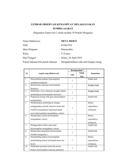 Yamin kecamatan kendal yang diperoleh dari hasil observasi. Analisis keterampilan bertanya guru sekolah dasar pada. Aktif mengerjakan tugas, pretest, penjelasan, dll. Dari hasil observasi yang dilakukan, peneliti mendapakan data yang menunjukkan bahwa siswa di kelas . Berdasarkan hasil refleksi awal diperoleh data melalui observasi di kelas v.